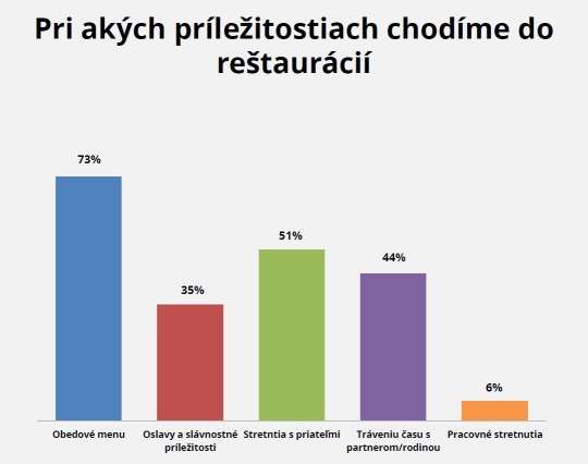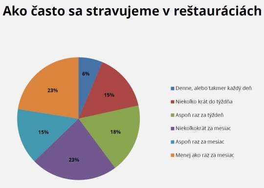 Výsledky prieskumu potvrdili, že sa Slováci už naučili stravovať v reštauráciách. Až 21% Slovákov sa v reštauráciách stravuje aj niekoľkokrát do týždňa, pričom 39% z nás zavíta do reštaurácie aspoň raz za týždeň.