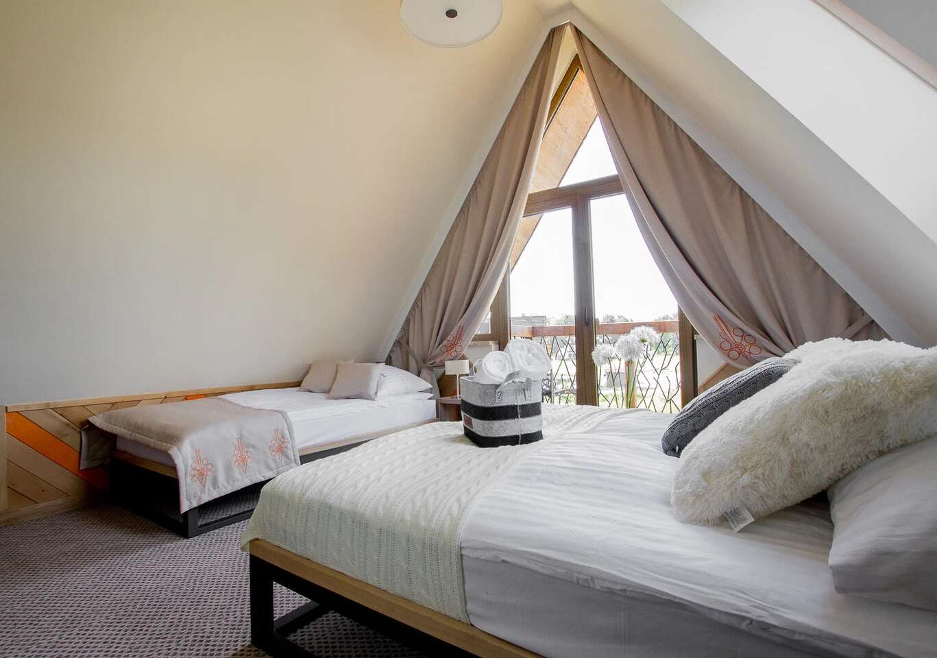 Ubytovaní budete v 2, 3 i 4-lôžkových izbách typu LUX. Všetky izbu majú vlastnú kúpeľňu s WC, balkón s výhľadom na panorámu Tatier alebo najbližšie okolie Termy a Kotelnice.