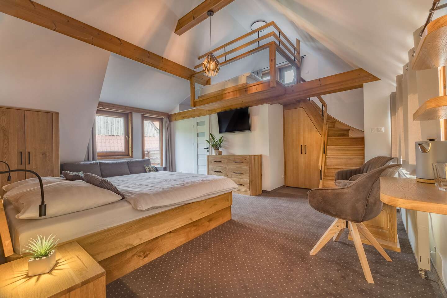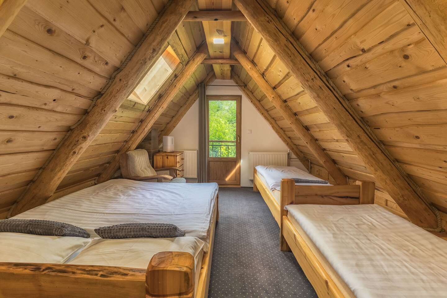 Pre hostí, ktorí hľadajú viac súkromia, sú k dispozícii aj samostatné chalúpky – s podkrovnými spálňami, spoločenskou miestnosťou s krbom a plne vybaveným kuchynským kútom. Ideálne pre rodiny alebo skupiny priateľov, ktorí chcú spojiť komfort penziónu s atmosférou horskej chaty.