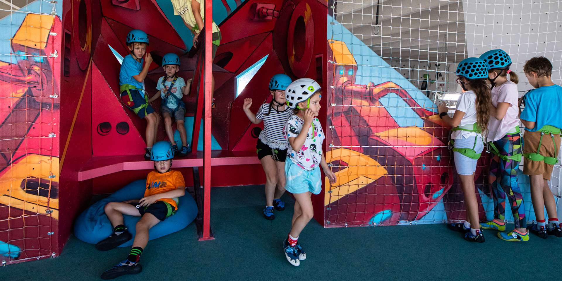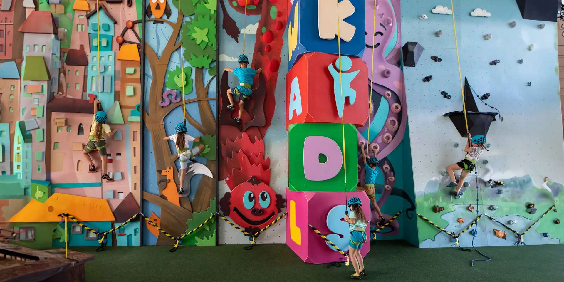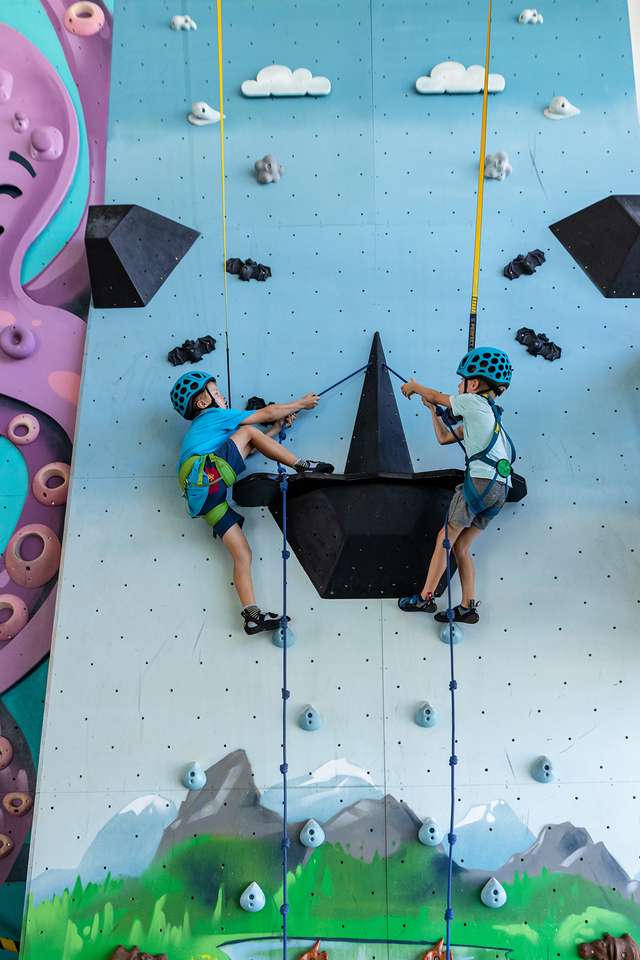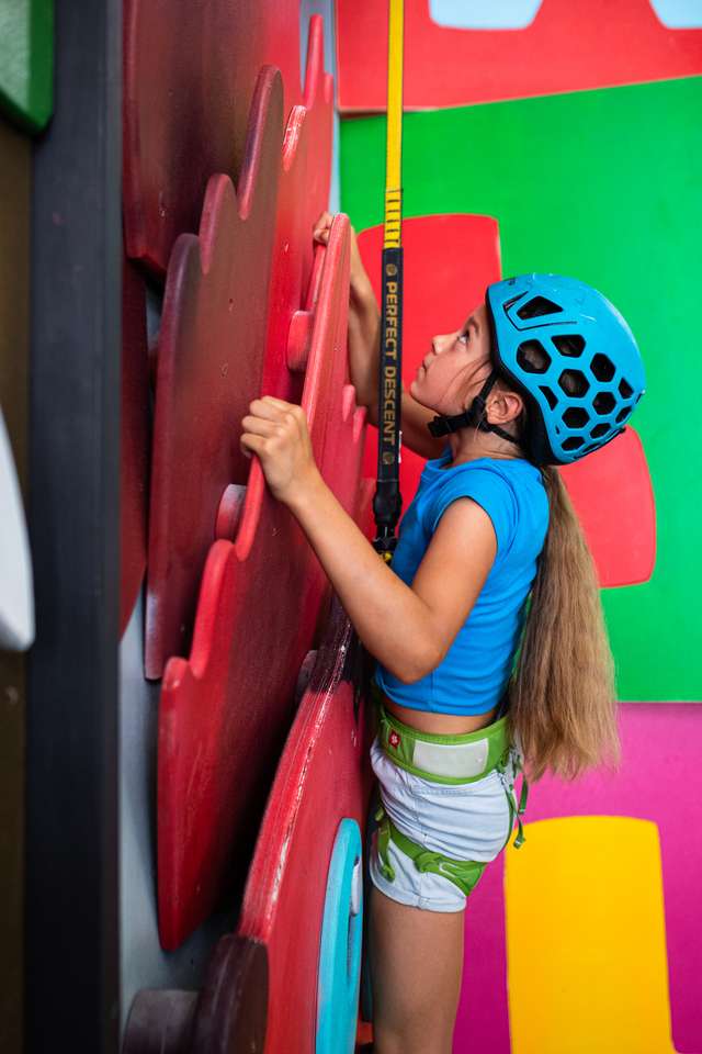 Zdolanie vrcholu steny, aj po niekoľkých predošlých pádoch, je úžasný pocit. O to viac, ak sú tieto steny pretvorené do deťom blízkeho, pestrofarebného sveta.